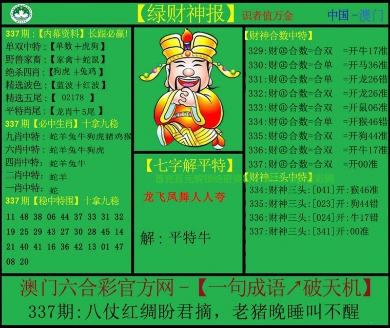 339期:初沫柒柒【平特★二肖】恭喜发财